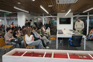 NoticiasCurso «Cultura Moderna en Occidente» se realiza en Gabinete Numismático Posted on 30/11/202410/12/2024 by sociologiaLos académicos Maureen Neckelmann y Andrés Biehl realizaron el cierre del curso «Cultura Moderna en Occidente» en el Gabinete Numismático, ubicado en el tercer piso de la Biblioteca San Joaquín UC, lugar que se ha convertido en un espacio de aprendizaje, cultura e investigación.En la ocasión, los profesores invitaron al académico Pablo Ortuzar, quien dictó una charla sobre los procesos de modernización y su reflejo en monedas, billetes y estampillas, con el objetivo de ilustrar a los estudiantes de primer año cómo el estudio de la cultura material puede convertirse en una herramienta clave para analizar y comprender procesos sociales e históricos complejos.