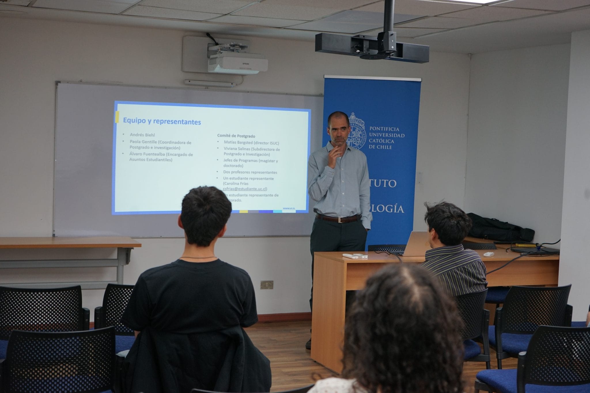 NoticiasInstituto de Sociología da bienvenida a la nueva cohorte del programa de Magíster Posted on 02/03/2026 by sociologia Informaciónface Información periodísticaTomás HerreraCoordinador de Comunicaciones y Extensióntiherrera@uc.clinsert_drive_file Unidad Facultad de Ciencias Socialeslocal_offer TemasMagíster en SociologíaEste lunes 2 de marzo se dio inicio al año académico 2026 a la nueva cohorte de alumnos de dedicación exclusiva y parcial del programa de Magíster en Sociología. La instancia estuvo precidida por Andrés Biehl, actual Subdirector de Postgrado e Investigación y Jefe de Programa de Magíster quien presentó a los alumnos la estructura del programa así como los aspectos operativos para su inicio de año académico. La instancia además contó con la participación de diversos centros de la Universidad Católica — Centro de Justicia y Sociedad (CJS), la Dirección de Estudios Sociales UC (DESUC), el Centro de Políticas Públicas UC y el Centro UC de Estudios de Vejez y Envejecimiento (CEVE UC) — quienes presentaron el trabajo que realizan, así como de las distintas oportunidades de desarrollo profesional y oportunidades de investigación que ofrecen para los estudiantes del programa de Magíster. Contenido relacionado Instituto de Sociología da bienvenida a la nueva cohorte del programa de Magíster Nueva cohorte 2026 del Magíster en Sociología inicia su año académico de estudios 02 Mar Social Network Sciences: Profesor Alejandro Espinosa-Rada realiza distintas visitas académicas en Europa El académico Alejandro Espinosa-Rada realizó distintas visitas académicas por Europa en distintas universidad sobre la [...] 24 Feb Resultado Ayudantías Primer Semestre 2026 Resultado del concurso de ayudantías para cursos del Instituto de Sociología para el Primer Semestre [...] 02 Feb Profesores ISUC se adjudican proyectos de Fondecyt Regular 2026 Proyectos adjudicados en Fondecyt Regular 2026 de los profesores del Instituto de Sociología UC 30 Ene Nuevos alumnos de magíster defienden trabajos de tesis Distintos alumnos del magíster en Sociología defendieron sus trabajos de tesis sobre temas como soledad, [...] 28 Ene Summer School sobre Ciencia de Redes reunió a investigadores en el Instituto de Sociología UC Summer School organizado por la Sociedad Chilena de Redes Sociales (ChiSocNet) reunió a investigadores en [...] 28 Ene Coloquio Pensar la IA desde el Sur: Diálogos en torno a la IA desde las ciencias sociales y humanidades Investigadores de ciencias sociales y humanidades discutieron sobre las dimensiones políticos y ambientales de la [...] 26 Ene Alumnos de magíster defienden trabajos de tesis Distintos alumnos del magíster en Sociología defendieron sus trabajos de tesis sobre temas como soledad, [...] 08 Ene