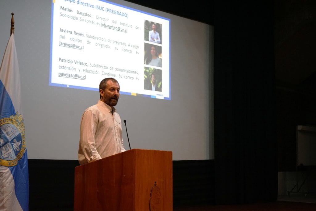 NoticiasInstituto de Sociología da bienvenida a las nuevas cohortes de posgrado y novatos de Sociología 2026 Posted on 02/03/202610/03/2026 by sociologia Informaciónface Información periodísticaTomás HerreraCoordinador de Comunicaciones y Extensióntiherrera@uc.clinsert_drive_file Unidad Facultad de Ciencias Socialeslocal_offer TemasMagíster en SociologíaPregradoDoctoradoPregradoEl martes 3 se desarrolló la bienvenida a los nuevos novatos de la Carrera de Sociología del Instituto de Sociología. La bienvenida a las nuevas y nuevos estudiantes se desarrolló en los patios de la Facultad de Ciencias Sociales en conjunto con las unidades académicas de Trabajo Social, Psicología y Antropología. Posteriormente, los alumnos fueron recibidos por sus profesores quienes se presentaron y dieron los lineamientos generales de la carrera y el sello del Instituto de Sociología.MagísterPor otro lado, el día lunes 2 de marzo se dio inicio al año académico 2026 a la nueva cohorte de alumnos de dedicación exclusiva y parcial del programa de Magíster en Sociología. La instancia estuvo precidida por Andrés Biehl, actual Subdirector de Postgrado e Investigación y Jefe de Programa de Magíster quien presentó a los alumnos la estructura del programa así como los aspectos operativos para su inicio de año académico. La instancia además contó con la participación de diversos centros de la Universidad Católica — Centro de Justicia y Sociedad (CJS), la Dirección de Estudios Sociales UC (DESUC), el Centro de Políticas Públicas UC y el Centro UC de Estudios de Vejez y Envejecimiento (CEVE UC) — quienes presentaron el trabajo que realizan, así como de las distintas oportunidades de desarrollo profesional y oportunidades de investigación que ofrecen para los estudiantes del programa de Magíster. Después de la presentación de los centros, los estudiantes tuvieron una conversación con Javiera Troncoso (PNUD) y Guillermo Montt (OIT) sobre investigación académica y su relevancia para políticas públicas en el contexto del trabajo de organismos internacionales.DoctoradoPor último, el día lunes 9 se dio la bienvenida oficial a la nueva cohorte de 5 nuevos doctorantes que se suman al programa de Doctorado del Instituto de Sociología. En la instancia la jefa del programa, Viviana Salinas, abordó aspectos operativos del programa y los doctorantes tuvieron la oportunidad de comentar de sus temas de investigación. Contenido relacionado Instituto de Sociología da bienvenida a las nuevas cohortes de posgrado y novatos de Sociología 2026 Nueva cohorte 2026 del Magíster en Sociología inicia su año académico de estudios 02 Mar Social Network Sciences: Profesor Alejandro Espinosa-Rada realiza distintas visitas académicas en Europa El académico Alejandro Espinosa-Rada realizó distintas visitas académicas por Europa en distintas universidad sobre la [...] 24 Feb Resultado Ayudantías Primer Semestre 2026 Resultado del concurso de ayudantías para cursos del Instituto de Sociología para el Primer Semestre [...] 02 Feb Profesores ISUC se adjudican proyectos de Fondecyt Regular 2026 Proyectos adjudicados en Fondecyt Regular 2026 de los profesores del Instituto de Sociología UC 30 Ene Nuevos alumnos de magíster defienden trabajos de tesis Distintos alumnos del magíster en Sociología defendieron sus trabajos de tesis sobre temas como soledad, [...] 28 Ene Summer School sobre Ciencia de Redes reunió a investigadores en el Instituto de Sociología UC Summer School organizado por la Sociedad Chilena de Redes Sociales (ChiSocNet) reunió a investigadores en [...] 28 Ene Coloquio Pensar la IA desde el Sur: Diálogos en torno a la IA desde las ciencias sociales y humanidades Investigadores de ciencias sociales y humanidades discutieron sobre las dimensiones políticos y ambientales de la [...] 26 Ene Alumnos de magíster defienden trabajos de tesis Distintos alumnos del magíster en Sociología defendieron sus trabajos de tesis sobre temas como soledad, [...] 08 Ene
