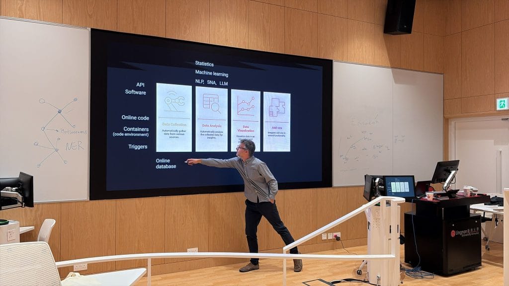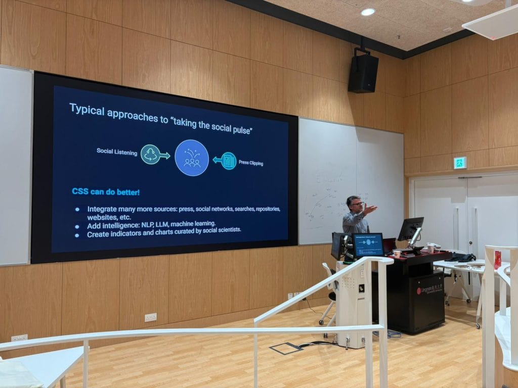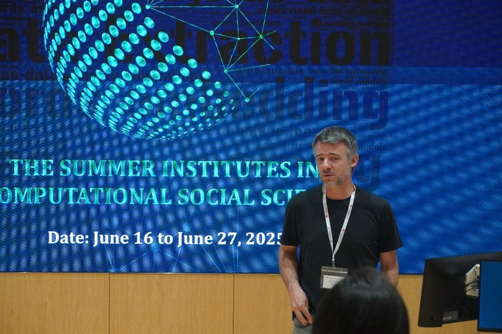 NoticiasProfesor Pablo Beytia y sociólogos ISUC participan del Summer Institute in Computational Social Science Posted on 30/06/202530/06/2025 by sociologia Entre el 16 y el 27 de junio se realizó en Hong Kong el Summer Institute in Computational Social Science en donde participó el profesor adjunto del Instituto de Sociología, Pablo Beytía. El Summer School incluyó distintas charlas magistrales, trabajos grupales y proyectos de investigación dirigidos por los propios participantes. También hubo conferencistas invitados que realizaron investigaciones en ciencias sociales computacionales en diversos contextos, como el mundo académico, la industria y el gobierno. Los temas abordados incluyeron extracción de datos, análisis supervisado de texto, análisis no supervisado de texto y análisis de imágenes. En la instancia el profesor Pablo Beytía dio la chara sobre el uso de ciencia social computacional para crear herramientas interactivas de análisis social en tiempo real, mezclando recolección automática de datos de internet, procesamiento de lenguaje natural, inteligencia artificial generativa y software de visualización analítica.En particular, abordó distintos ejemplos de aplicación de técnicas a proyectos concretos como el Monitor Social, en investigaciones sobre seguimiento de elecciones, detectar conflictos sociales, analizar riesgos socioambientales, monitorear conversaciones parlamentarias y comparar la reputación de organizaciones. En este encuentro también participaron sociólogos y profesores que pasaron por el Instituto de Sociología como Francisco Olivos y Pedro Seguel, ambos ex-alumnos del ISUC. Su navegador no soporta videos HTML5. Si estás interesado/a en conocer más sobre manejo de datos sociales digitales, te invitamos a revisar el próximo curso que impartirá el Instituto de Sociología: Ciencia de datos sociales: aprende a obtener y analizar datos sociales desde Internet, el que será impartido por el profesor Pablo Beytía Más Información arrow_forward