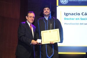 NoticiasNuevos doctores y doctoras en Sociología UC Posted on 10/12/202404/11/2025 by sociologiaQueremos felicitar a nuestros nuevos doctores y doctoras en Sociología UC, Catalina, Eleonora, Camila, Ignacio y Jorge. Nos llena de orgullo que estos grandes investigadores, profesionales y personas recibieran la medalla doctoral UC. ¡Un gran logro!🟥Catalina Siles Tesis: «Paternidad como participación. Repensando el ausentismo paterno a partir de historias familiares en Santiago, Chile» Guía de tesis: Consuelo Araos y Luis Maldonado🟨 Eleonora López Tesis: «Estudio de caso de experiencias de sufrimiento social en hijos/as de peruanos/as en Santiago de Chile» Guía de tesis: Andrew Webb🟦Camila Ortiz Tesis: «Integración horizontal de las elites y confianza política en América Latina” Guía de tesis: Matías Bargsted🟧Ignacio Cáceres Tesis: «Pluralización del campo religioso y su impacto en la cohesión social en América Latina» Guía de tesis: Nicolás Somma🟨 Jorge Gallardo Tesis: «La depresión de los otros: ¿Cómo se enacta la depresión en un lugar de salud intercultural urbano?» Guía de tesis: Manuel TironiEstos trabajos reflejan la diversidad, la profundización y la calidad de la investigación sociológica actual.¡Les deseamos un exitoso futuro y una vida profesional plena como doctores y doctoras en Sociología! 🌟