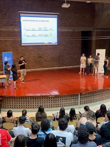 NoticiasSociología UC dio la bienvenida a más de 80 novatos y novatas Posted on 06/03/202408/05/2024 by sociologiaLas y los estudiantes de pregrado participaron de una presentación de la Facultad, luego recorrieron sus dependencias, conocieron a autoridades y académicos/as, y culminaron la mañana con una actividad deportiva a cargo de Sociales UC y un entretenido almuerzo.En un animado y festivo inicio académico, Sociología UC llevó a cabo la jornada de bienvenida a las y los nuevos estudiantes de pregrado. El evento organizado por la subdirección de pregrado contó con un variado cronograma de actividades y tuvo lugar en diferentes puntos del campus.La jornada comenzó a las 10:00 am con una recepción de parte de la Facultad de Ciencias Sociales en la emblemática Concha Acústica. Estudiantes, profesores y personal administrativo se reunieron para celebrar el inicio del nuevo periodo académico con mensajes de bienvenida y la presentación de las principales autoridades de la facultad.Posteriormente, las y los novatos de Sociología UC se trasladaron a las Aulas Lassen, donde tuvieron la oportunidad de conocer más de cerca a los profesores/as y compañeros/as, así como recibir información crucial sobre los planes de estudio y recursos disponibles.La jornada continuó con una dinámica deportiva en las canchas del campus. Los estudiantes participaron activamente en juegos recreativos, promoviendo la integración y el espíritu de equipo.La jornada de bienvenida terminó siendo de un evento de gran compañerismo, integración y bienestar para los recién llegados. Los nuevos estudiantes expresaron su entusiasmo y gratitud por la cálida acogida, marcando el inicio de una prometedora etapa académica en la UC.